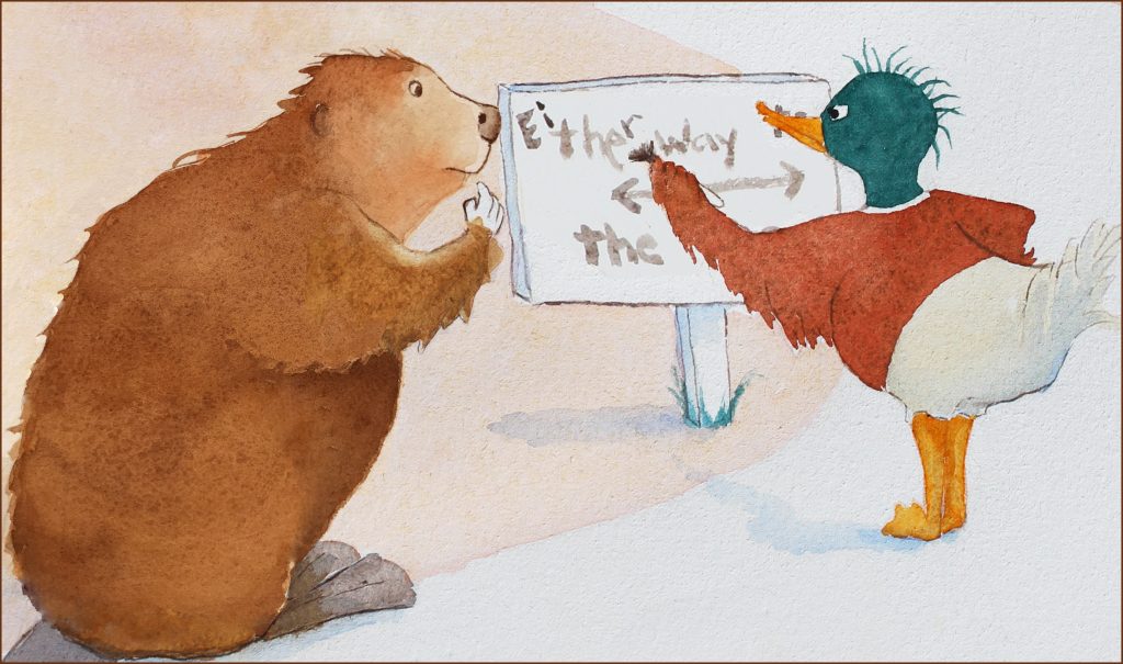 FROG’S RAINY-DAY STORY AND OTHER FABLES is a book written by my husband, Michael James Dowling, and illustrated by me. Frog and all these characters are part of the fables book which is being published by Focus on the Family. There are nine fables each followed by quotes from the culture and then quotes from Scripture with enclosed discussion questions. All ages love this book!