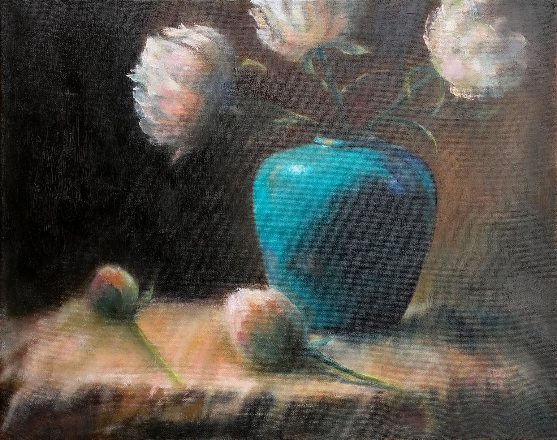 Peonies in a Blue Vase