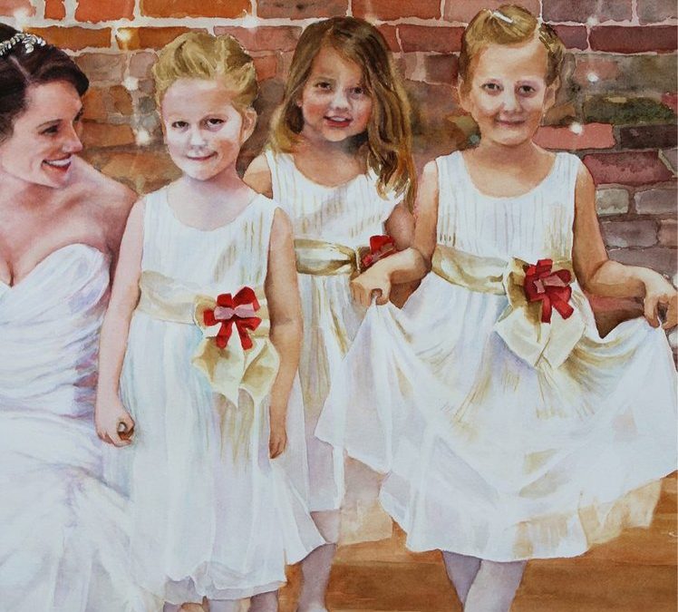 close up of bride with three flower girls
