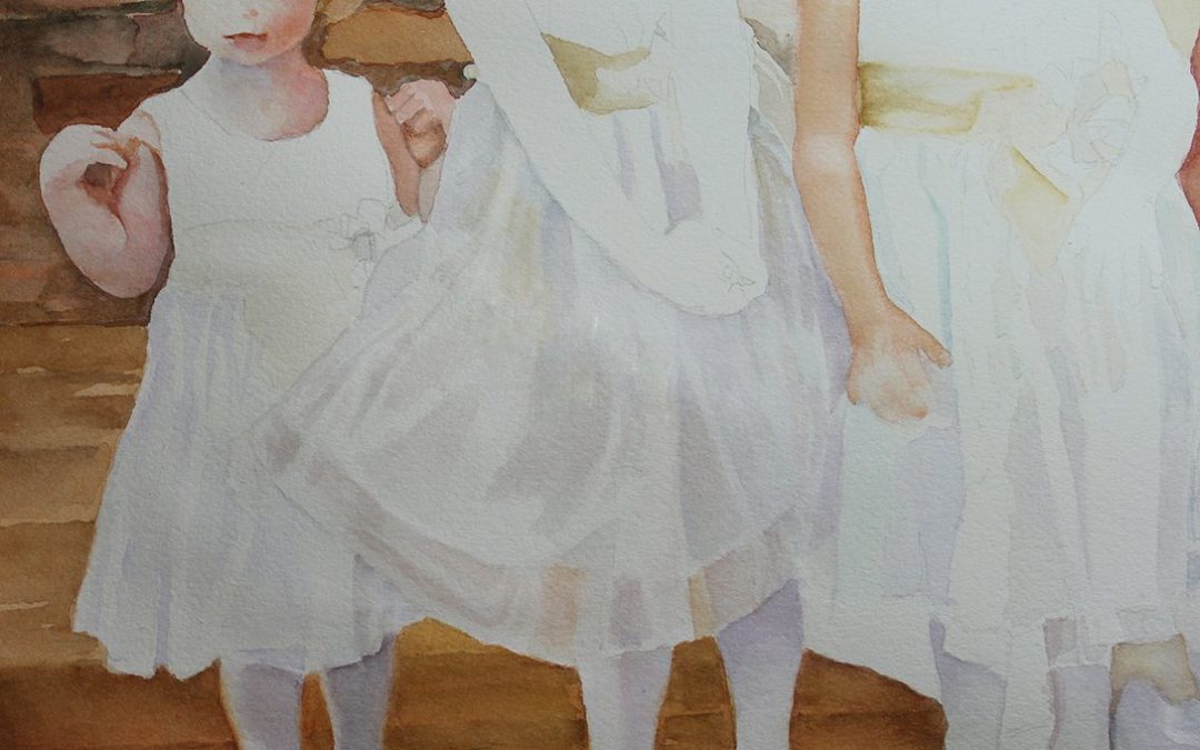 laying in the colors in three of the flower girls’ dresses
